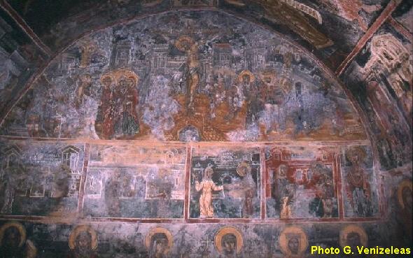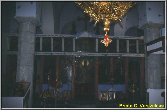 της Παναγίας, με κτιστό τέμπλο και τοιχογραφίες που φιλοτεχνήθηκαν το 1879 από τον Παναγιώτη Κληροδέτη.