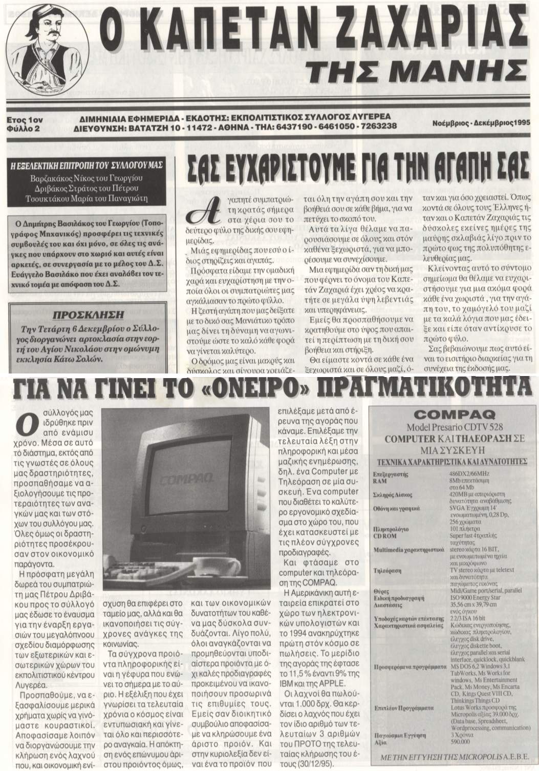 Έτος 1ο Νοέμβριος - Δεκέμβριος 1995