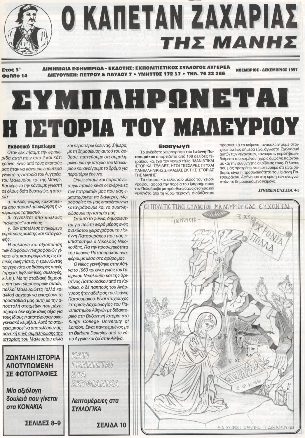 Επικοινωνία για τυχόν προβλήματα της Ιστοσελίδας: webmaster@mani.org.gr