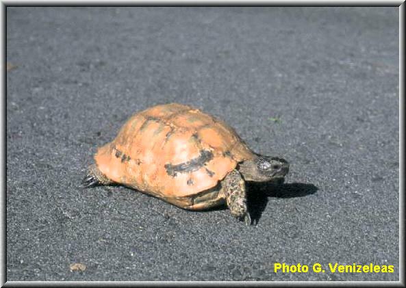 (testudo graeca): Έχει μήκος 30 εκ. και βάρος δύο κιλά.
