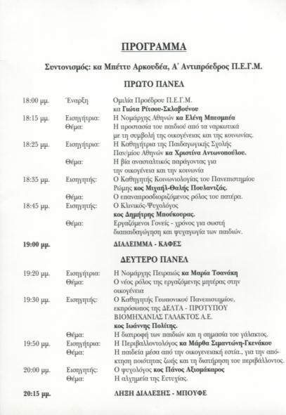 ΙΔΡΥΣΗ ΠΑΡΑΡΤΗΜΑΤΟΣ ΑΘΗΝΩΝ ΙΟΥΝΙΟΣ: (3 & 4.6.2000) Εκδρομή στα χωριά της Μεσσηνιακής Μάνης - Συνάντηση και συζήτηση με τους Τοπικούς Φορείς στο Ξενοδοχείο "Φιλοξένια" στην Καλαμάτα, με τη συνεργασία του Παραρτήματος Καλαμάτας και Τελετή Ανακήρυξης Επίτιμου Μέλους - κ. Σοφία Καλαντζάκου. (10.6.2000) Από κοινού εορτασμός για την ΓΥΝΑΙΚΑ ΤΟΥ ΔΙΡΟΥ, με τον Σύλλογο του Διρού και τους άλλους Συλλόγους από την Ομοσπονδία των Λακώνων. Κατάθεση στεφάνου στο Μνημείο του Άγνωστου Στρατιώτη στην Αθήνα. (25.6.2000) Κατάθεση στεφάνου στην Αρεόπολη, στον εορτασμό της ΓΥΝΑΙΚΑΣ ΤΟΥ ΔΙΡΟΥ, μετά από πρόσκληση της Νομαρχίας Λακωνίας και του Δήμου Οιτύλου. Και στις δύο εκδηλώσεις το Λάβαρο της Ένωσης κρατούσαν δύο κοπέλες ντυμένες με Μανιάτικες στολές. Επαφές με Επίτιμα μέλη και Τοπικούς Φορείς Μάνης για το Προσυνέδριο. ΙΟΥΛΙΟΣ: (27-28-29/6/2000) Συμμετοχή στο 53ο Συνέδριο της Παλλακωνικής Ομοσπονδίας ΗΠΑ - ΚΑΝΑΔΑ στη ΣΠΑΡΤΗ. Εγγραφή στην Ομοσπονδία. Χαιρετισμός Προέδρου Π.Ε.Γ.Μ. και πρόταση για ίδρυση Παραρτημάτων στην Αμερική. Εκδήλωση ενδιαφέροντος από δύο συμπατριώτισσες από ΗΠΑ και ΚΑΝΑΔΑ. Υπόσχεση υποστήριξης από την Νεοεκλεγείσα Πρόεδρο της Ομοσπονδίας κ. Αθηνά Κονιδιτσώτη.