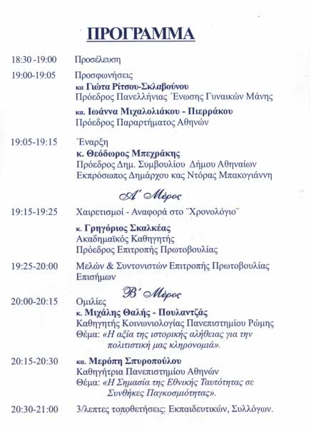 συνεργασία της Παλλακωνικής Ένωσης, της Ένωσης Απανταχού Μανιατών, του