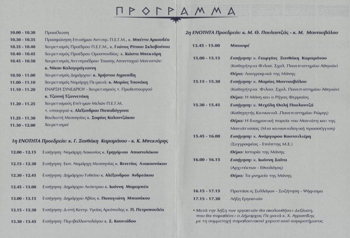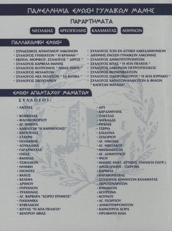 [ Ύμνος στη Μάνη ] [ Εκδηλώσεις 1999 ] [ Εκδηλώσεις 2000 ] [ Εκδηλώσεις 2001 ] [ Εκδηλώσεις 2002 ] [ Εκδηλώσεις 2003 ] [ Εκδηλώσεις 2004 ] [ Εκδηλώσεις 2005 ] [ Εκδηλώσεις 2006 ] [ Χρονολόγιο Βουλής ] [ 1ο Μαν/κο Συνέδριο ] [ Προσυνέδριο 2005 ] [ 2ο Μαν/κο Συνέδριο ] [ Αγαπημένα ] |