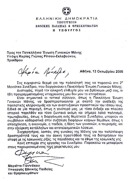 [Πρόεδρος Π.Ε.Γ.Μ.] [Ύμνος Μάνης] [Ευλογία] [Προβολή διαφανειών] [κ. Πουλατζάς] [κ. Αγραπίδης] [κ. Σκαλκέας] [κα Γιαννάκου] [κα Πετραλιά] [κ. Μιχαλολιάκος] [κ. Καλός] [κ. Σκανδαλάκης] [κ. Νεράτζης] [κ. Βαρβιτσιώτης] [κα Αβούρη] [ΝΔ] [ΠΑΣΟΚ] [ΚΚΕ] [ΣΥΝ]